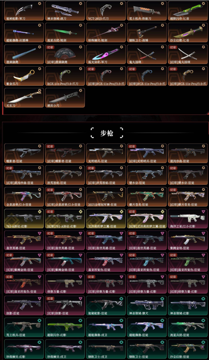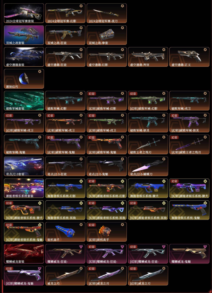 2025全球冠军狂徒虚空遗器2024冠军双城之战破败军械源能者娱乐系统威龙之刃VCT爪显卡爪鬼丸国纲剥皮小刀奇点2.0噬影者 狂徒光明哨兵狂徒塑水宗 狂徒 混沌狂徒全息波普 狂徒偃月苍龙 狂徒781幻影艾沃莉 狂徒盖世狂徒 紫金狂徒 盖亚狂徒 掠影狂徒侦查幻影 归零者莽侠盖亚飞将离子冥驹西部奥丁奇点 战神vct25标配