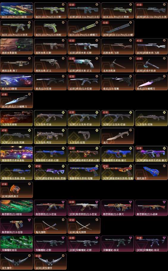可排位大库存☆25爪刀☆RGX☆上古炎龙☆双城之战☆艾沃莉☆塑水宗☆混沌序曲☆西部☆各种散件☆炫彩