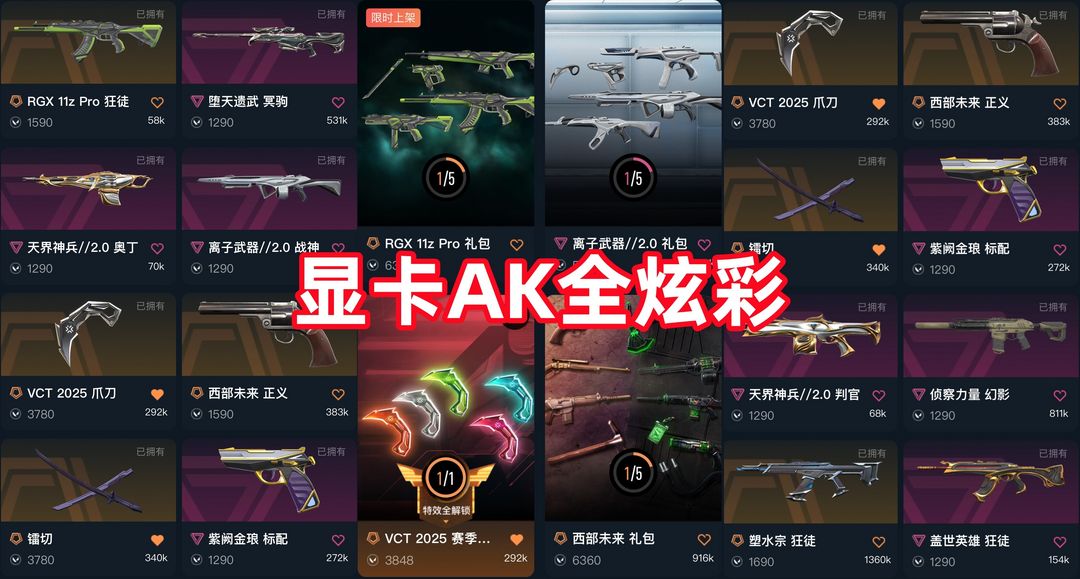 可排☆全炫彩☆显卡AK显卡1.0☆VCT爪刀☆镭切☆塑水宗☆侦查M4☆紫金标配☆西部正义☆弃王大狙