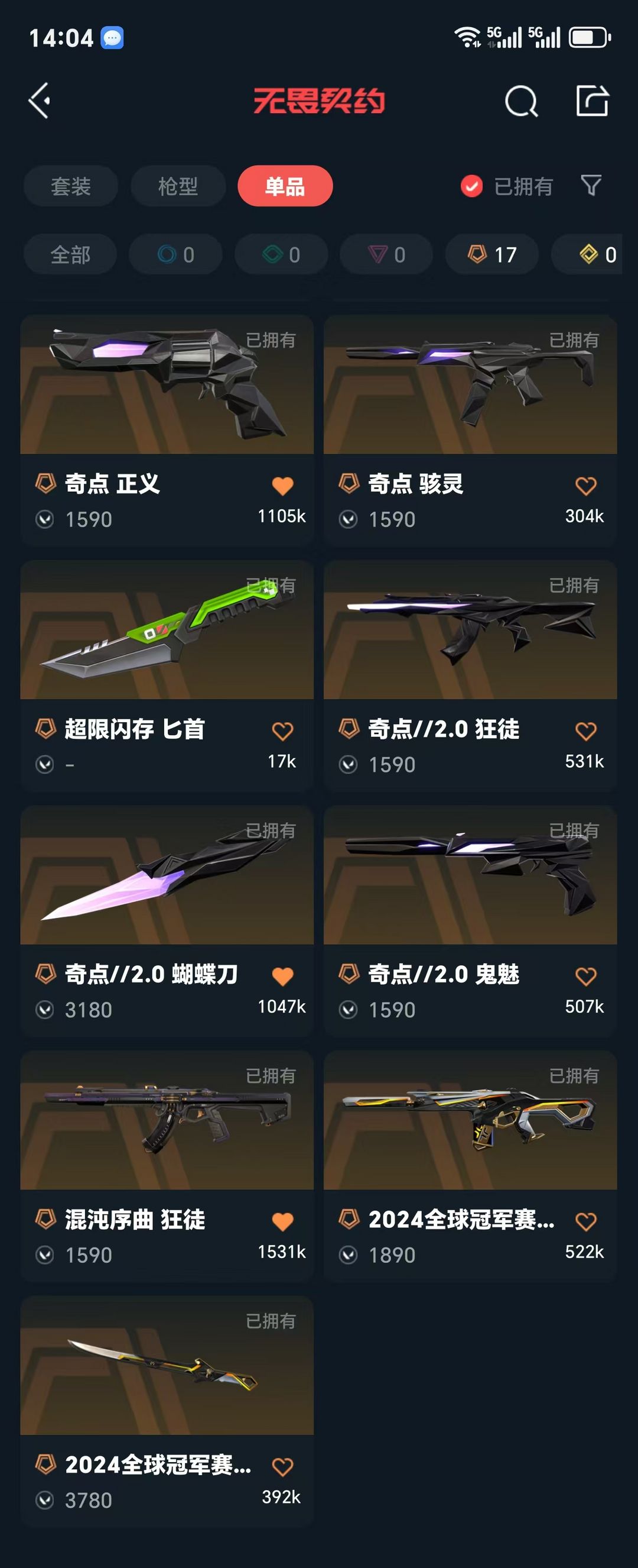 传奇数量:17