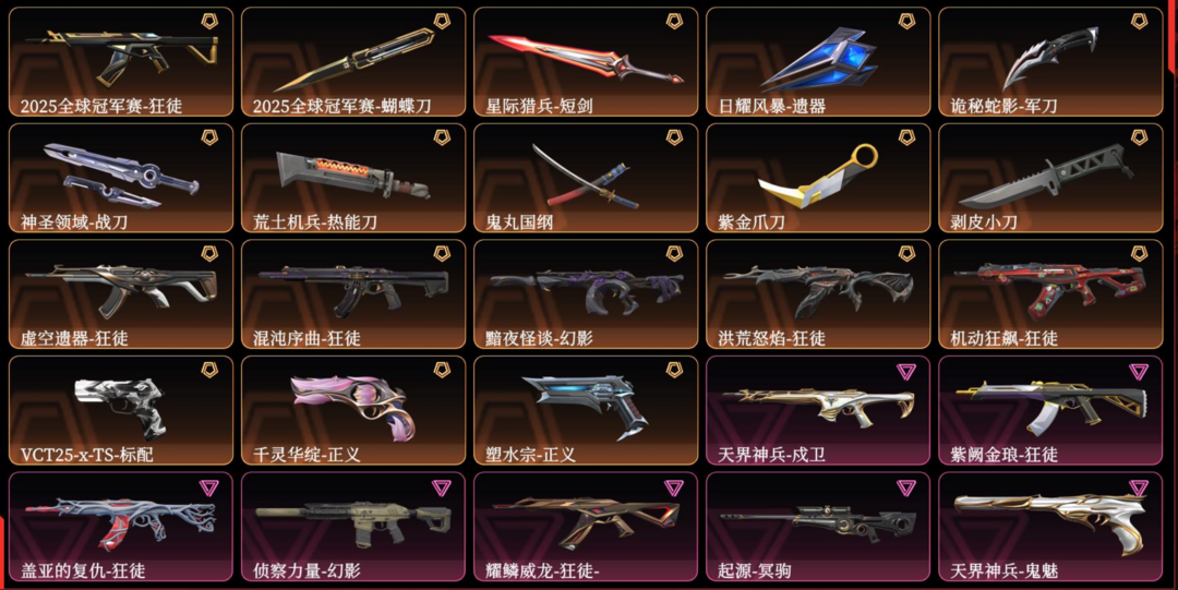 【25冠军套】紫金鬼丸剥皮⭐莲花正义vct标配天神鬼魅⭐AK虚空混沌流脓摩托盖亚紫阙耀鳞⭐2把幻影