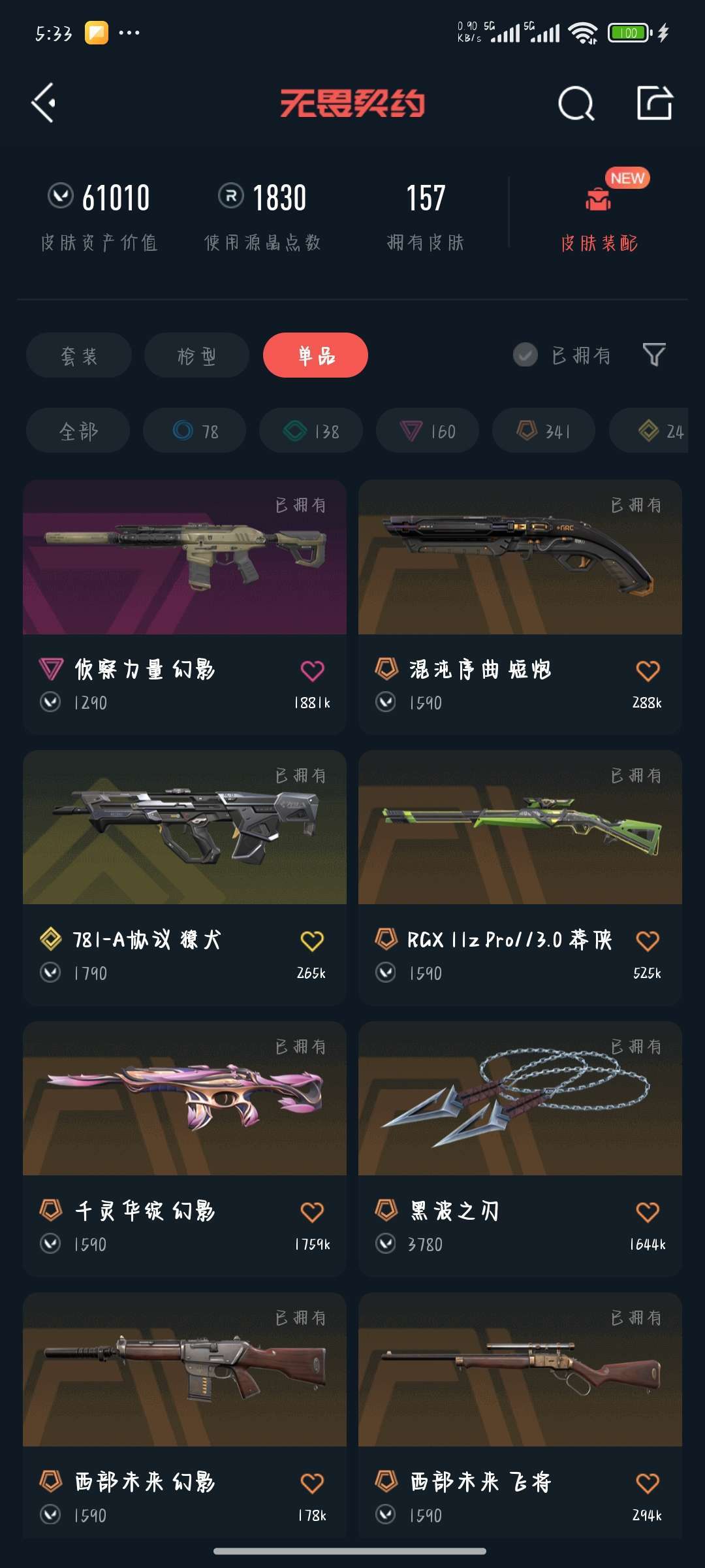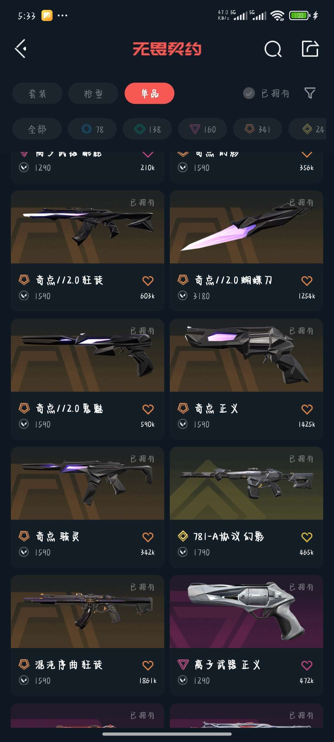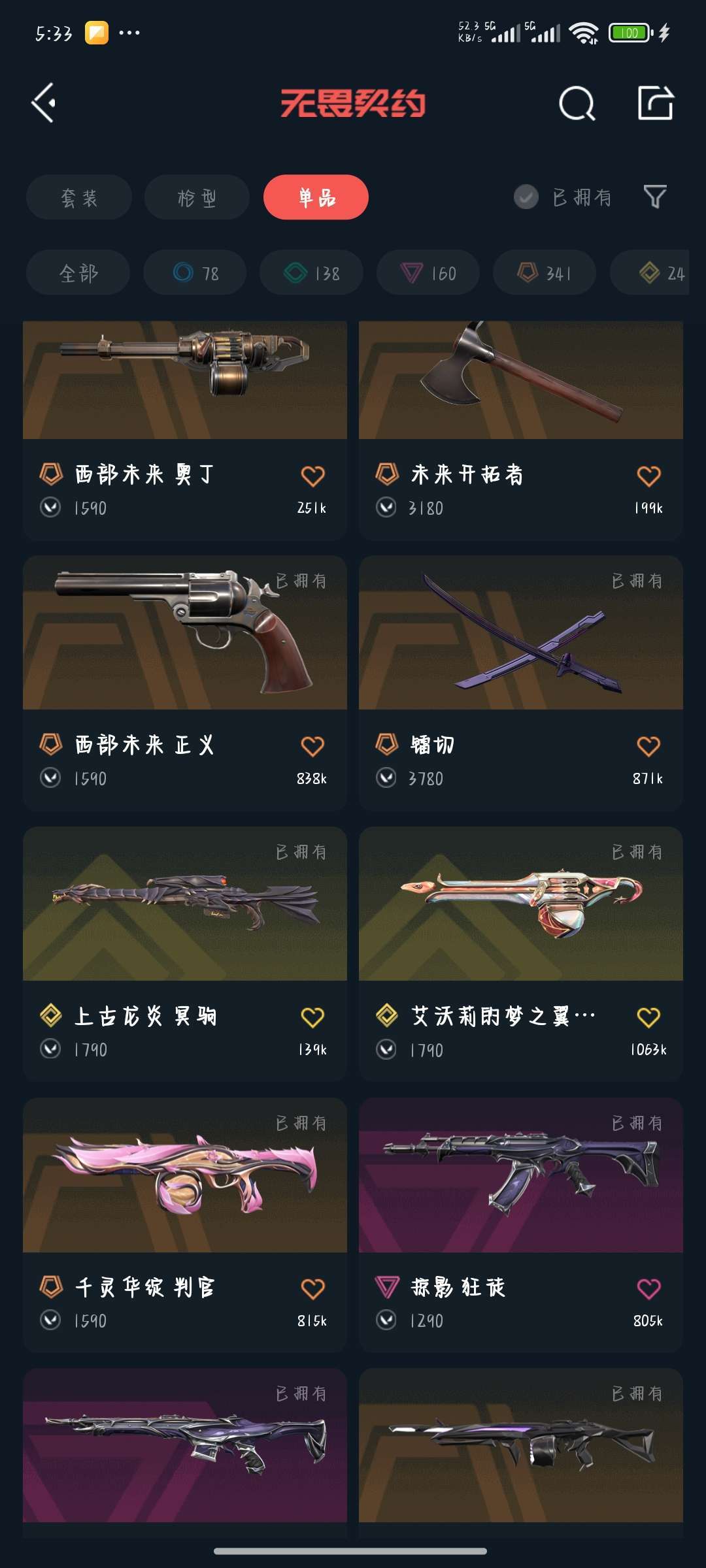 奇点回火套/西部未来套/侦查幻影/混沌ak/莲花m4/黑波之刃/镭切/紫金ak/781幻影/起源大狙/上古龙炎大狙/堰月苍龙大狙/显卡莽侠/离子正义/猫猫奥丁/