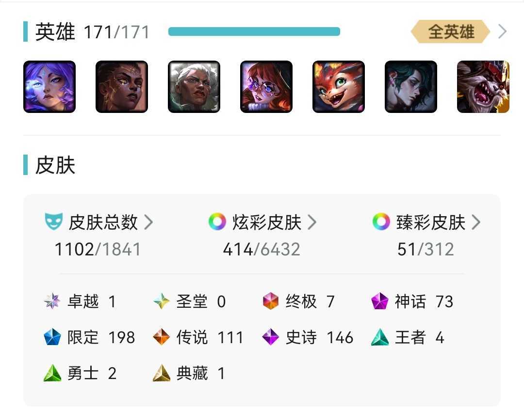 主播⚡1500皮肤⚡全区第一⚡名人堂爱阿狸⚡73神话⚡7终极⚡天龙之子全套⚡神话小英雄神话棋盘