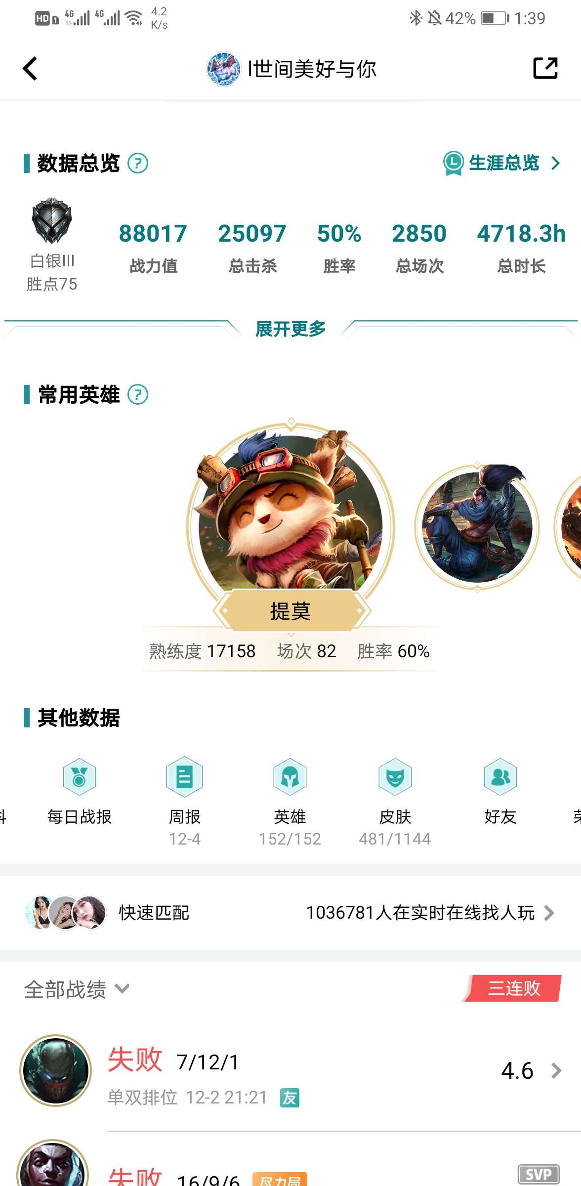 段位:572级 不屈白银IV