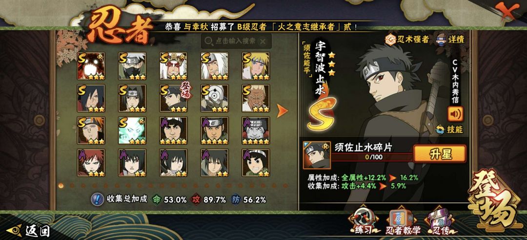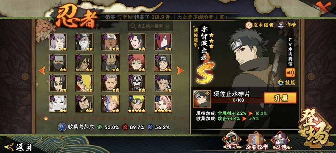 12个s,26个A,一共127个忍者(拒绝恶劣的玩家,不要瞎打段位,让我们一起守护村子)