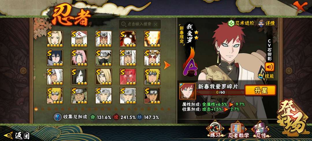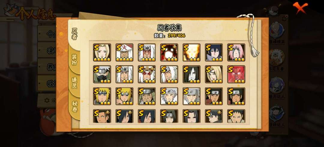 300忍者高强度点卷a基本都有,2400w战力,98强度通灵都有