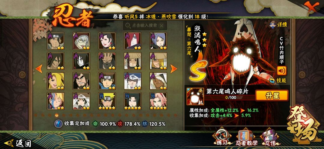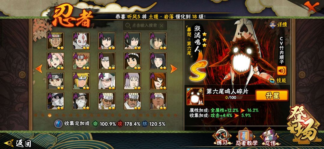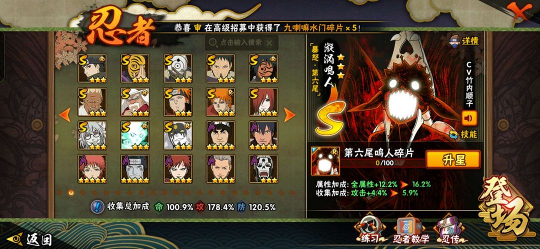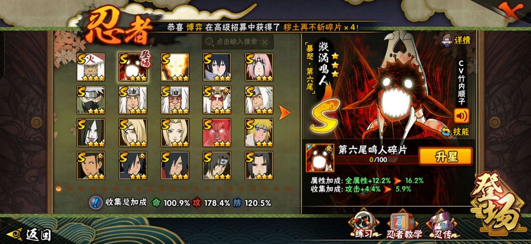 六尾鸣人⭐️天道超⭐️须佐止水⭐️创立柱间⭐️主流高招⭐️33S43A⭐️1542W战力老马鬼鲛皮肤