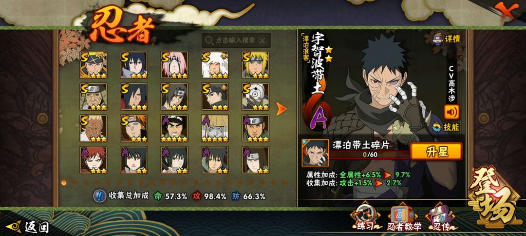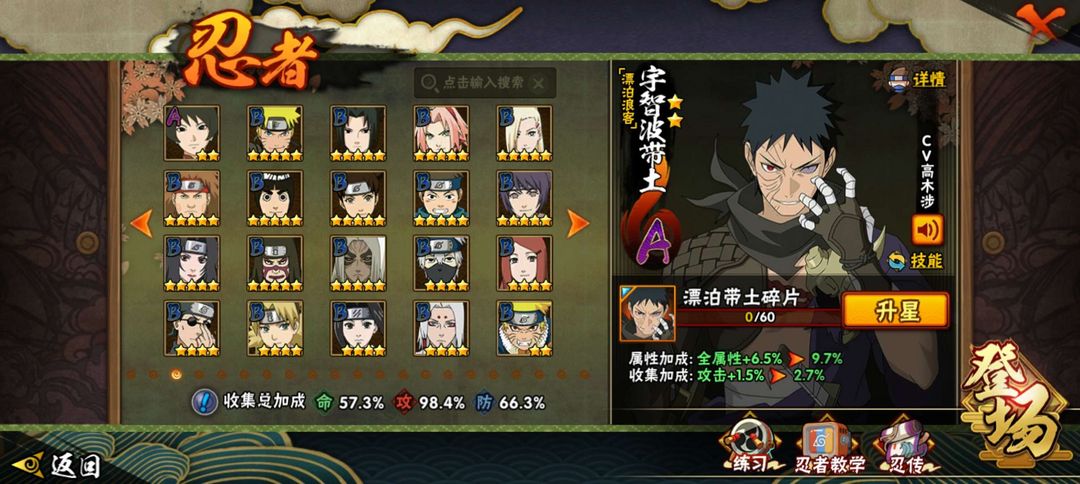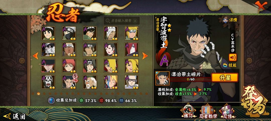 ✨超值✨1029万战力,漂泊带土+漂泊佩恩+须佐止水,15个s和17个a忍,高质量,没人租可继续玩
