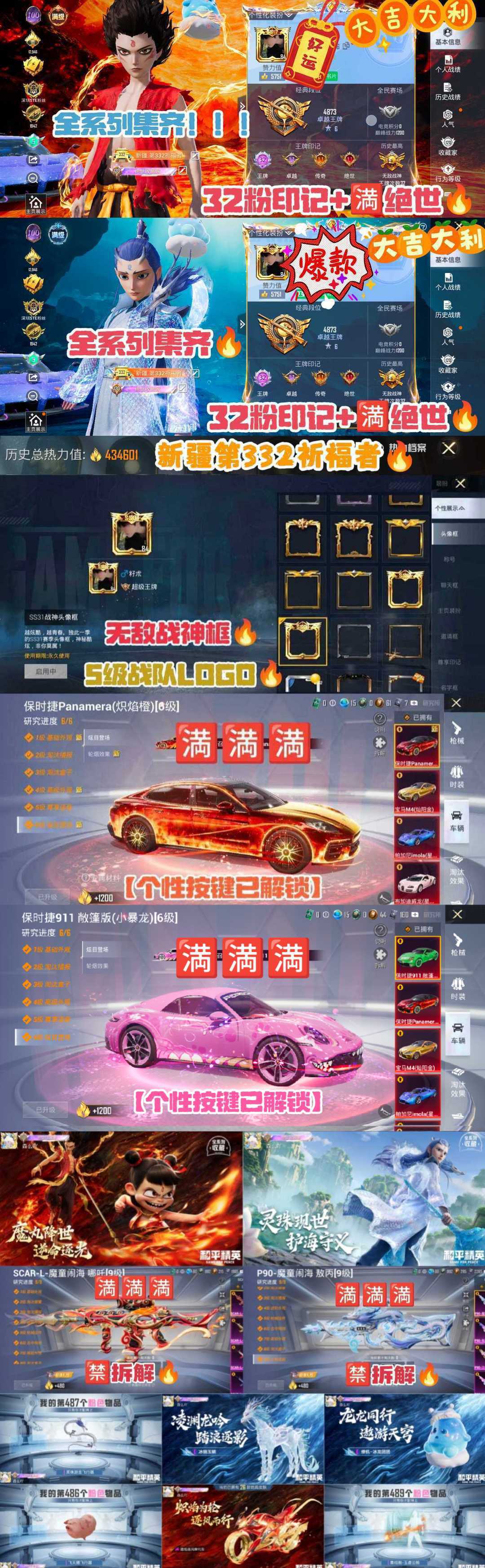 哪吒敖丙集齐 满级17套全红 双满级保时捷 老101㉔把9级特枪⑩升级车45万热200粉70特24车