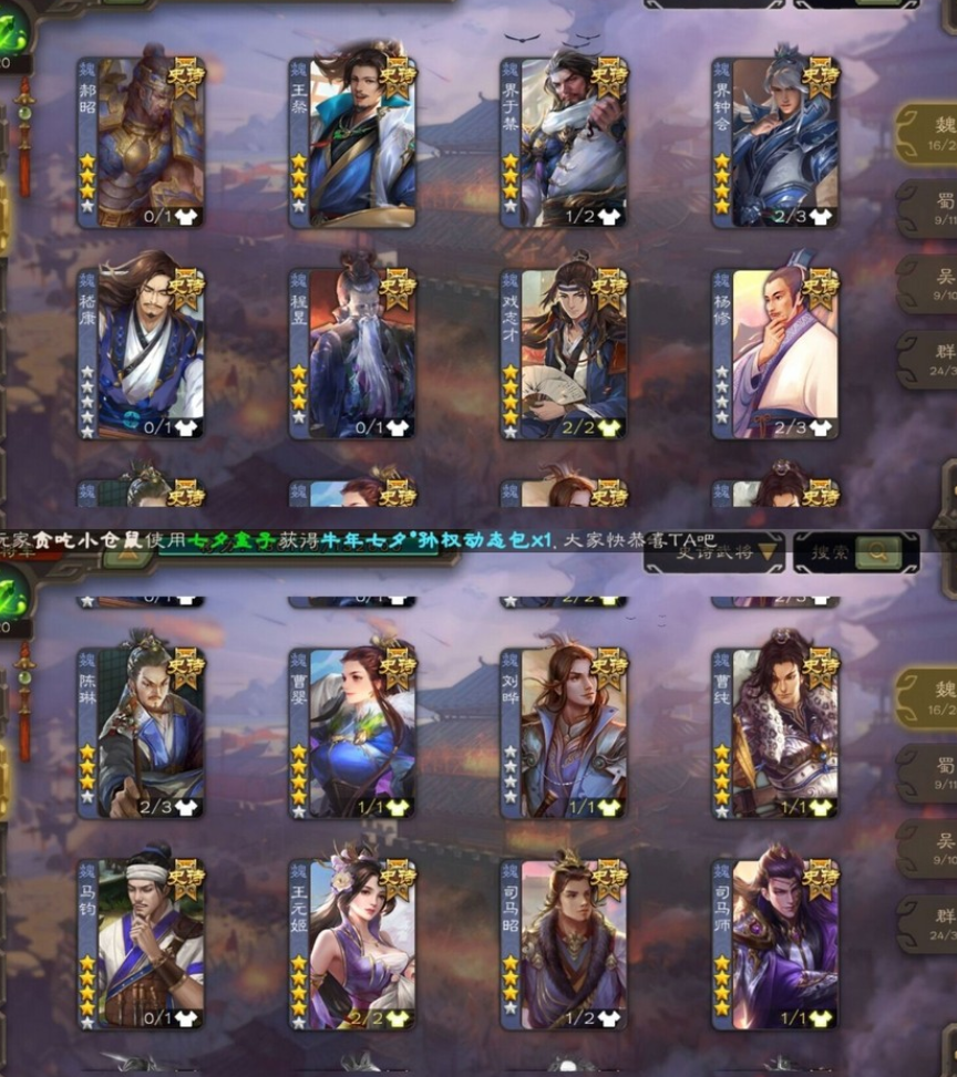 二等大将军☆神郭嘉动刘焉徐荣神甘宁☆动王元姬大宝动曹婴杜预杨彪马钧☆司马昭界钟会张琪瑛动界左慈刘璋