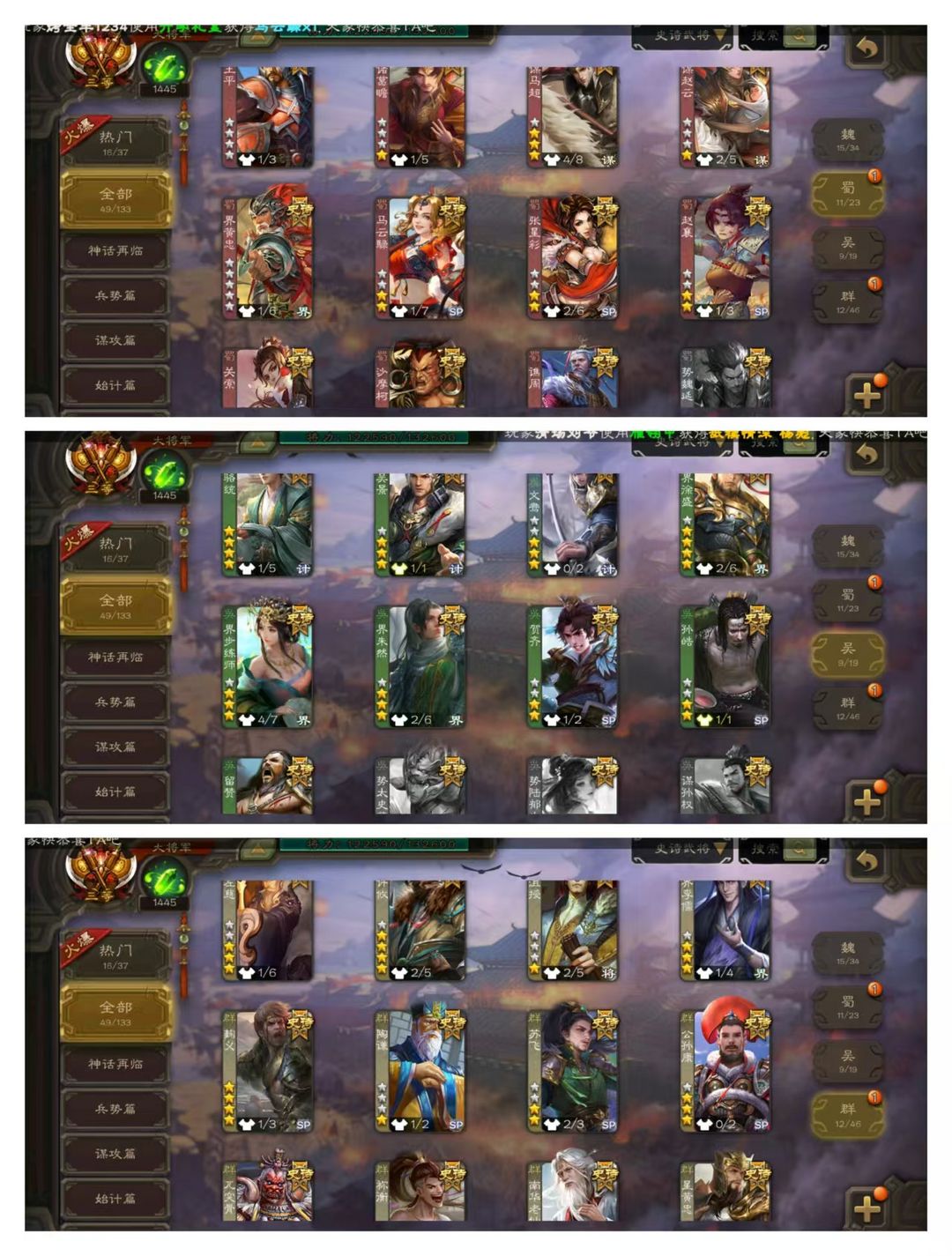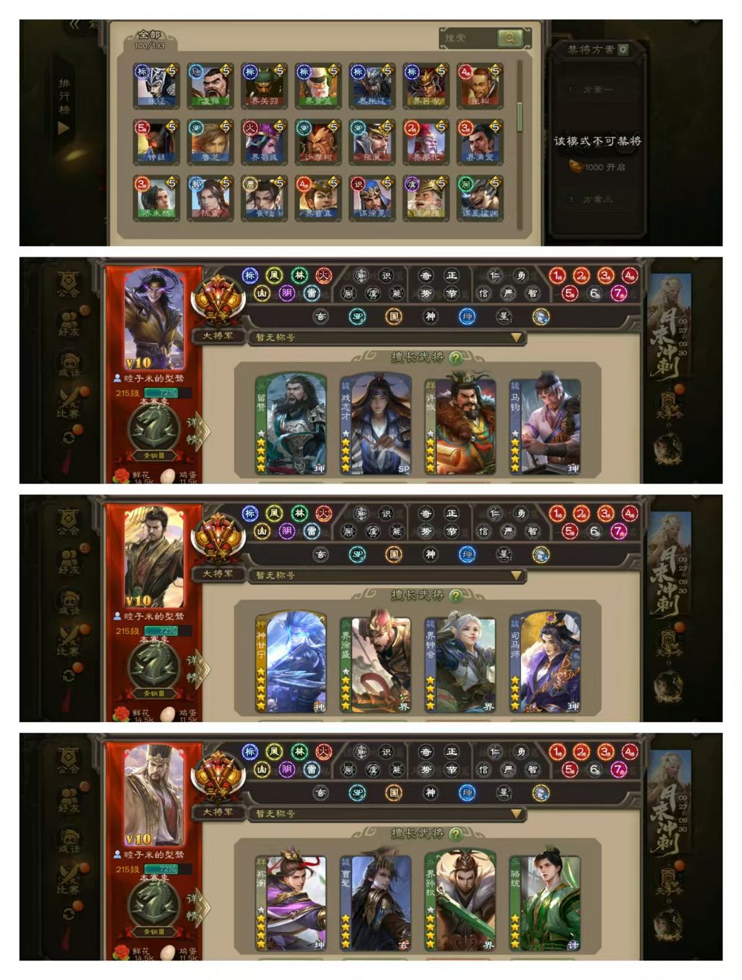 官方三等大将军,无卡,VIP10! 20四星玉龙:动神甘宁动戏志才动留赞,动司马师动界孙权,金马钧金许攸金界钟会金祢衡,曹髦文鸯骆统界徐盛! 50史诗武将,动谋马超,南华老仙神赵云界李儒等! 28动皮70金皮170国战皮肤!
