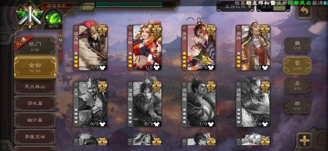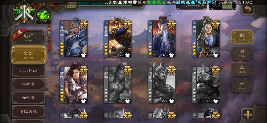 点将★神曹操双形态界钟会孙寒华大宝★神太史慈神赵云关索★金皮骆统谋马超28史诗